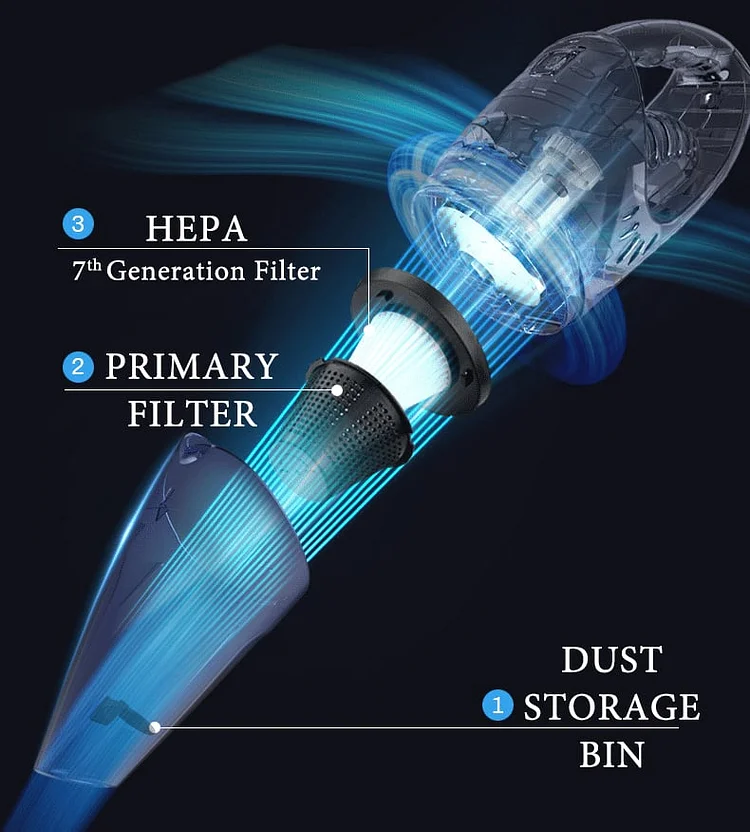 Seventh-generation upgraded HEPA. can effectively block dust with two dense filter layers. and can purify some bacteria. truly achieve dust removal and bacteriostasis.
