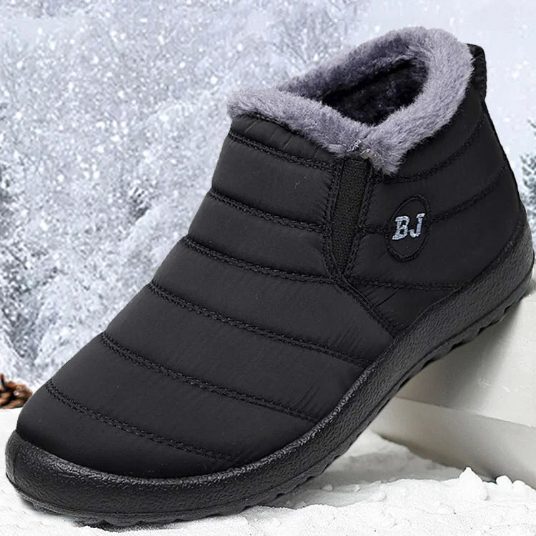 Kaegreel Men's Waterproof Warm Fur Lining Letter Slip On Ankle Boots