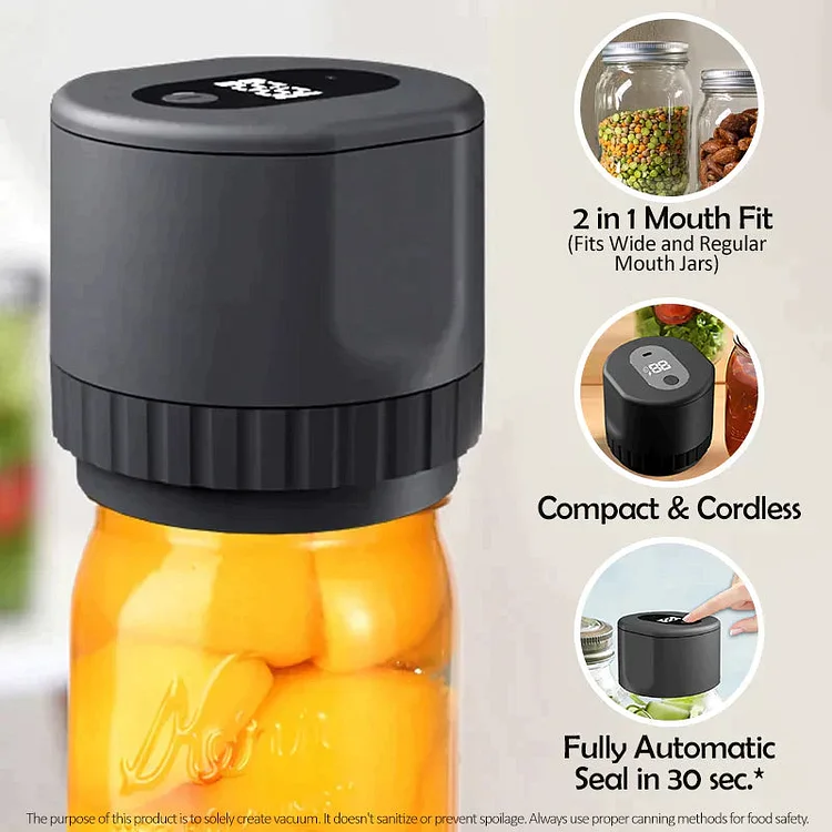With its all-in-one design, you can vacuum seal regular or wide-mouth jars effortlessly, with no extra accessories needed.