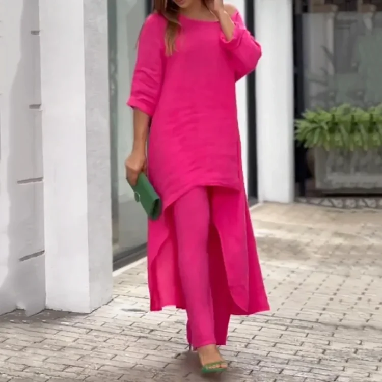 Women Cotton Linen Tracksuit Two Piece Set 2024 Summer Casual Loose Solid Blouse T-shirt Wide Leg Pants Suit Outfits 2 Piece Set